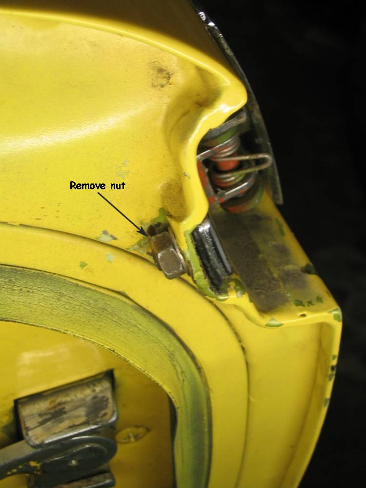 Start by opening the door and removing the nut that secures the back end of the handle to the door: