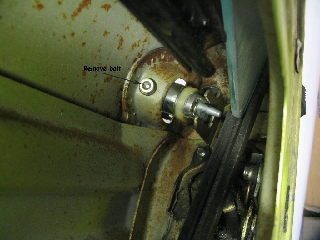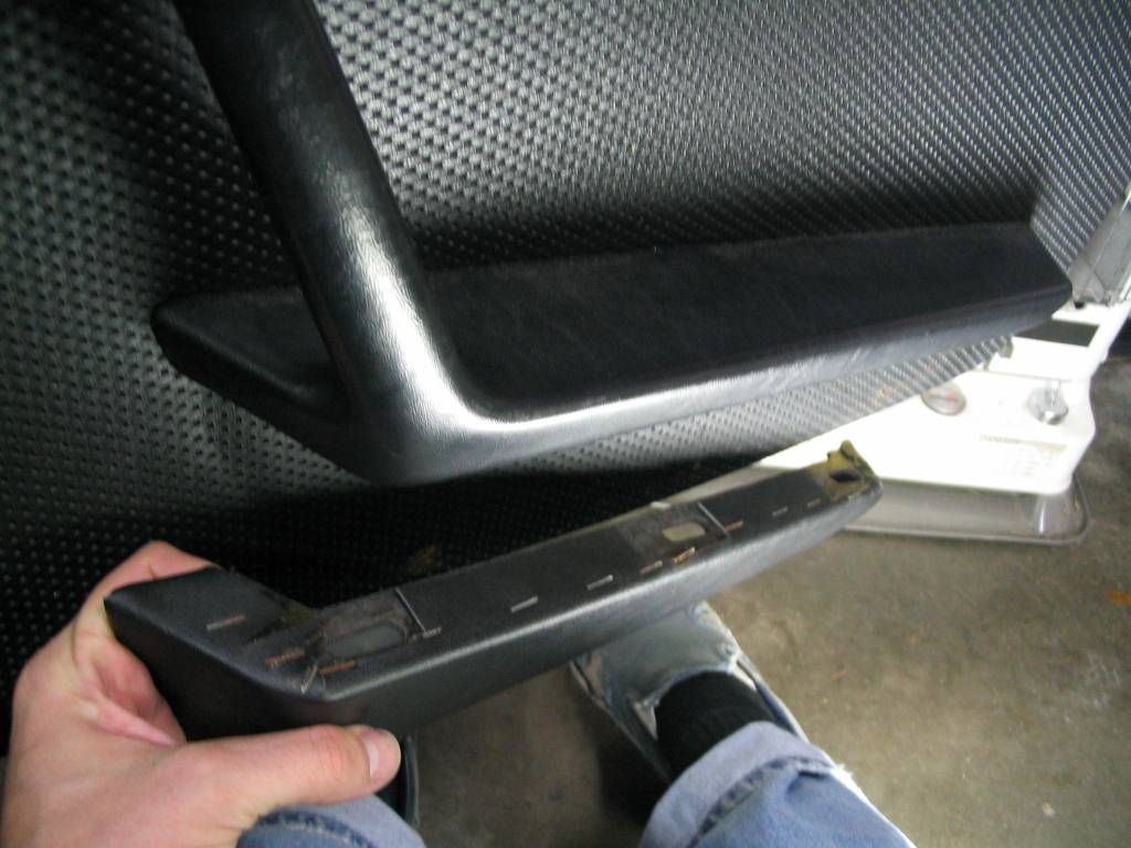 It's not necessary to remove the three lower bolts from the arm rest. I did it to my panel and have included it here just for grins: