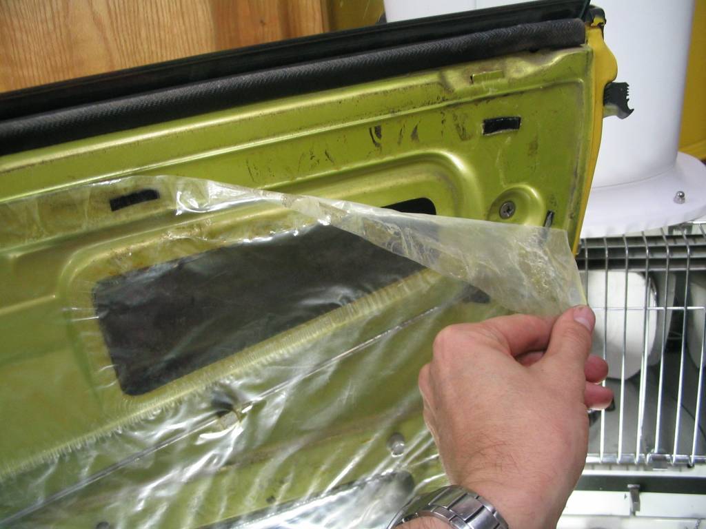 If you need to replace the plastic sheet you can use a heavy-duty garbage bag trimmed to fit the door. As you can