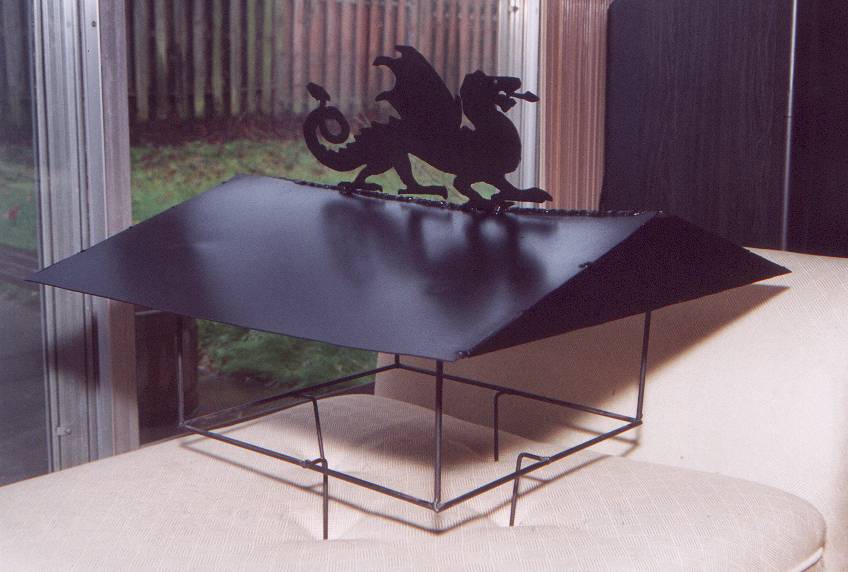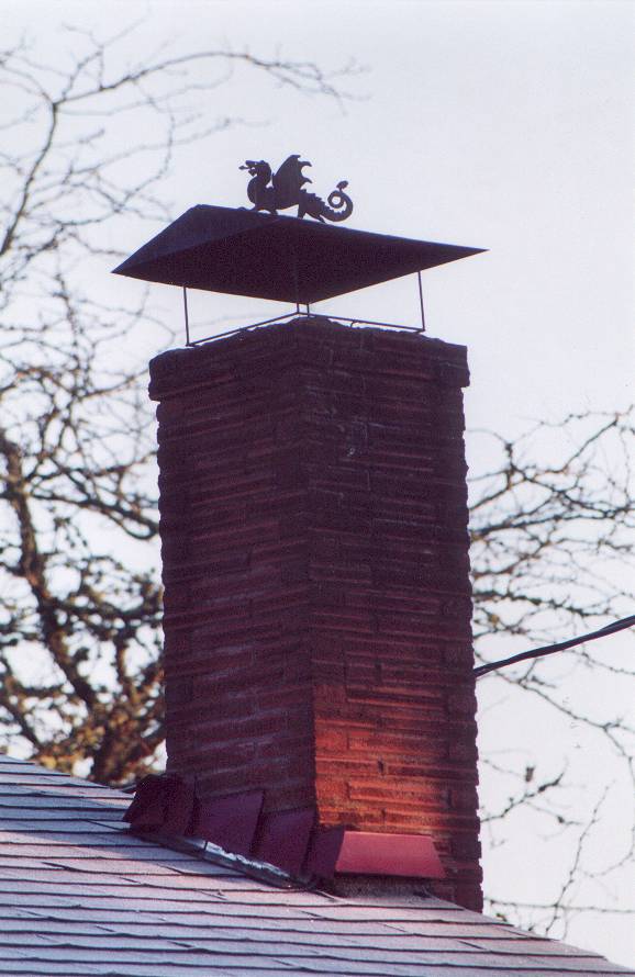 - The chimney cap I made from scratch. Keeps the rain out of the chimney. Close-up. Mounted.