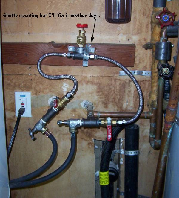 - Installed garden hose fitting at washer faucets so I can wash my car with filtered water, even in the dead of winter! Before After