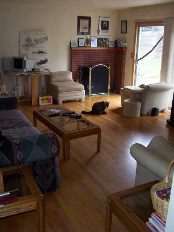 - Removed living room carpet to expose hardwood floor (entire house has original hardwood flooring)