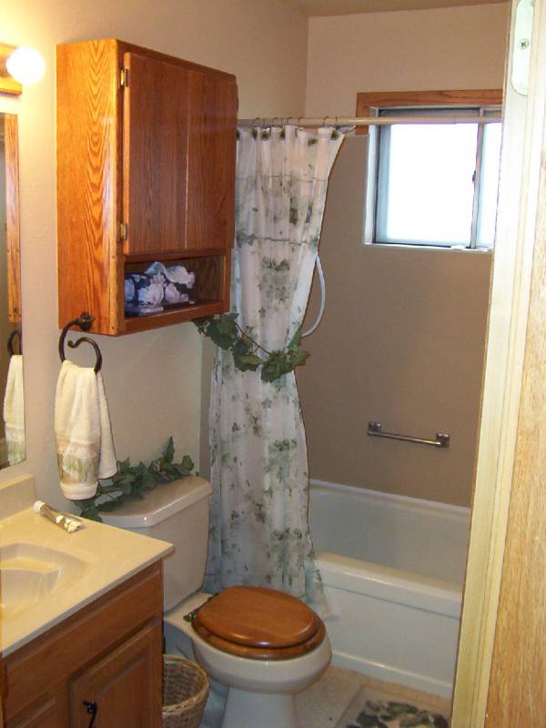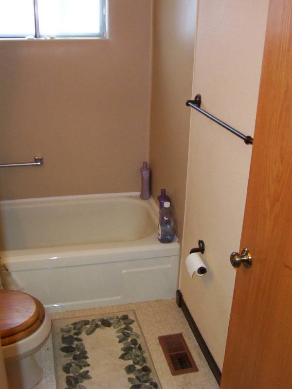 - Surface remodeling of main bathroom (paint, towel hangers, removed shower doors & replaced w/curtain, sealed tub/shower, new wall/floor trim and hand colored by me, etc.)1 2 3 4 5