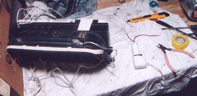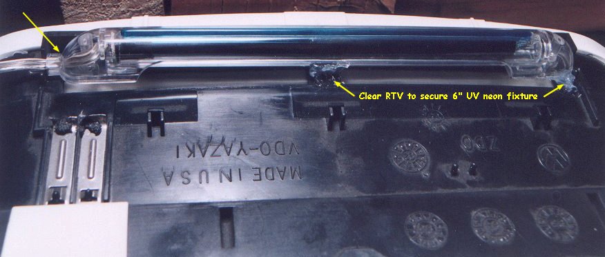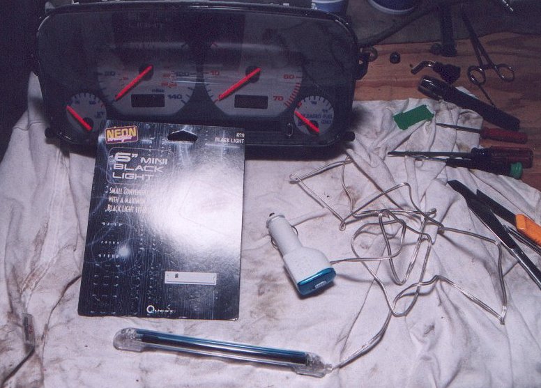 Here's a [crappy] image of the 6" UV neon lamp I bought at G.I. Joes in their automotive ricer section. It was inexpensive and plugs into the cigarette lighter.