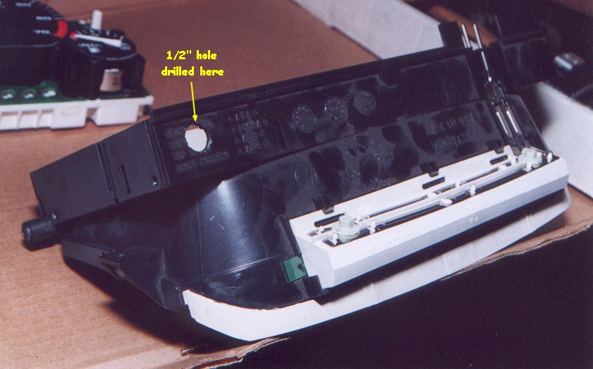 Drill a half-inch hole in the upper-left front housing. This is where the wiring will pass through for the RI gauges.