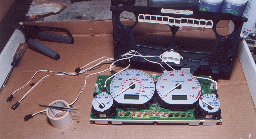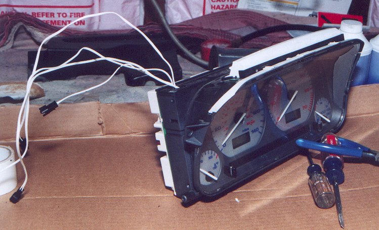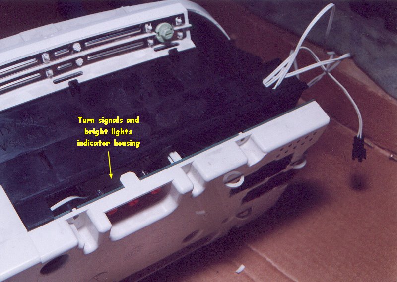 Routing the tachometer RI wire was a real pain as it had to go under the turn signal and bright lights indicator housing.
