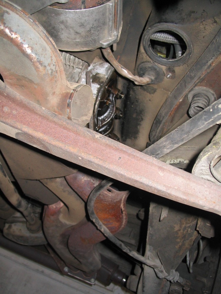 Looking forward, this shows the area opened up with the two pipes removed. This is the area where you'll be when working on the forward cylinders (#2 & #4).