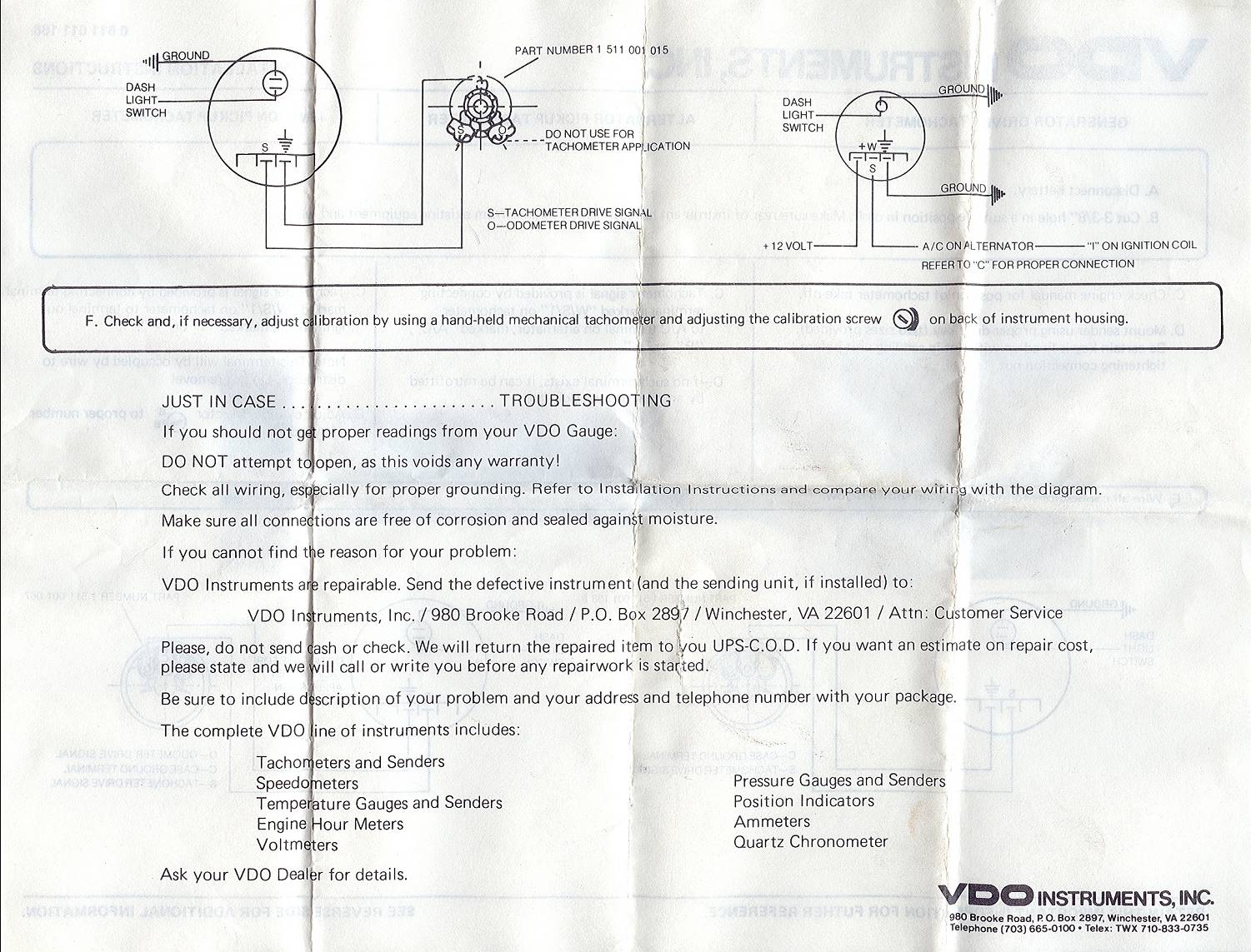VDO tachometer wiring instructions, page 1